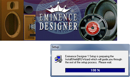 - When the setup program begins, you'll see the Eminence Desiger title art and you'll see the InstallShield load (shown below). We use an industry-standard InstallShield installer for Eminence Designer.