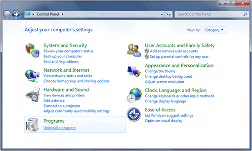 Launch the Windows Control Panel from the Windows Start menu and click on "Uninstall a program" as shown below: