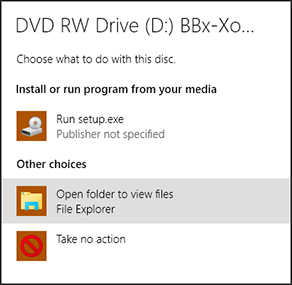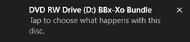 - Insert the BassBox/X•over Pro CD-R disc into a compatible CD, DVD or Blu-ray drive. A message similar to the one shown below should appear in the lower right corner of the display.