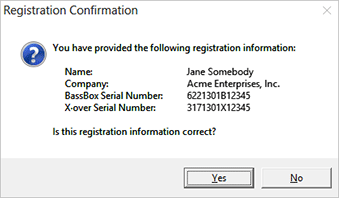 The Registration Confirmation dialog will appear as shown below so you can double-check your information. If it is correct, click on the "Yes" button. Otherwise, click on the "No" button and the program will return to the previous User Information dialog so you can re-enter your information and the serial number(s).