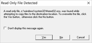 If a Read Only File Detected dialog appears like the one shown below, you should probably respond by clicking on the "No" button. Later, if BassBox Pro, BassBox Lite or X•over Pro do run properly, you can uninstall them, reinstall them and select "Yes" the second time.