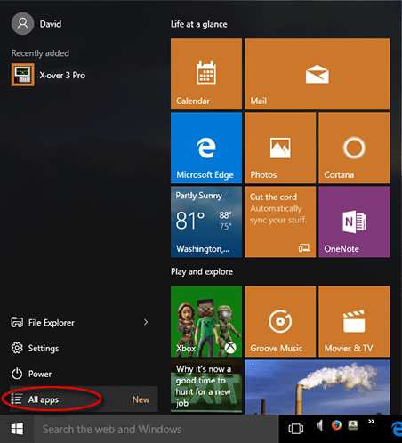 - If a program is not listed, click on "All apps" at the bottom of the menu as shown below.