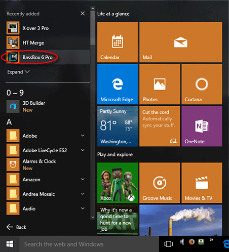 Unfortunately, Windows 10 isn't very consistent and sometimes fails to list all of the recently added programs. In the example above, both BassBox 6 Pro and X•over 3 Pro were installed. Yet only X•over 3 Pro is listed.
